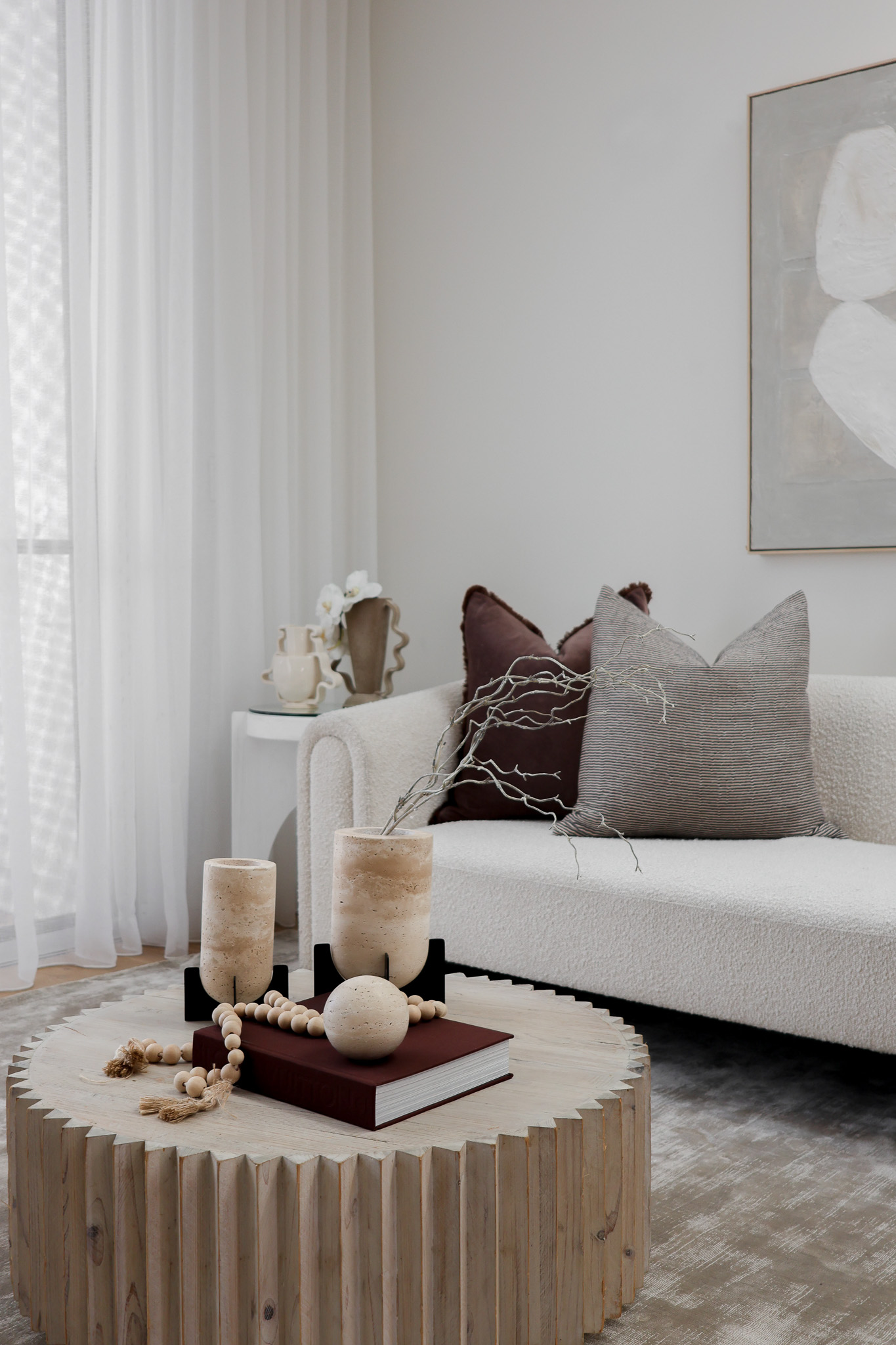 A sculptural chair, textured fabric, or a subtle hit of colour gives the room depth without overwhelming it. Safe doesn’t have to mean boring.