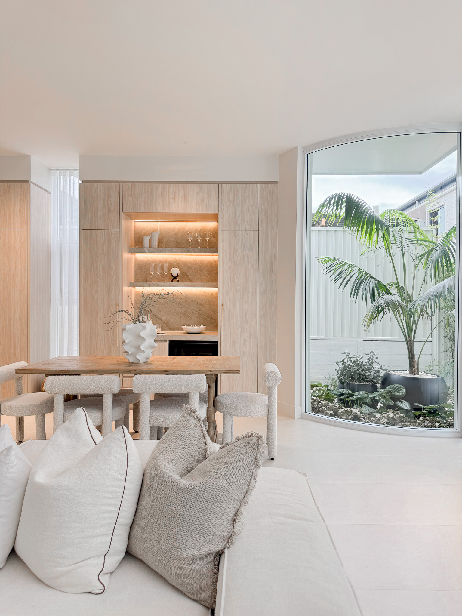 The aim for this project was to focus on enhancing the home’s natural beauty and modern features. We aimed to create a seamless flow between spaces, choosing furnishings that complement the finishes while adding warmth and sophistication. Our stylists thoughtfully chose pieces that highlighted the property’s open, airy feel balancing a sleek and contemporary design.
