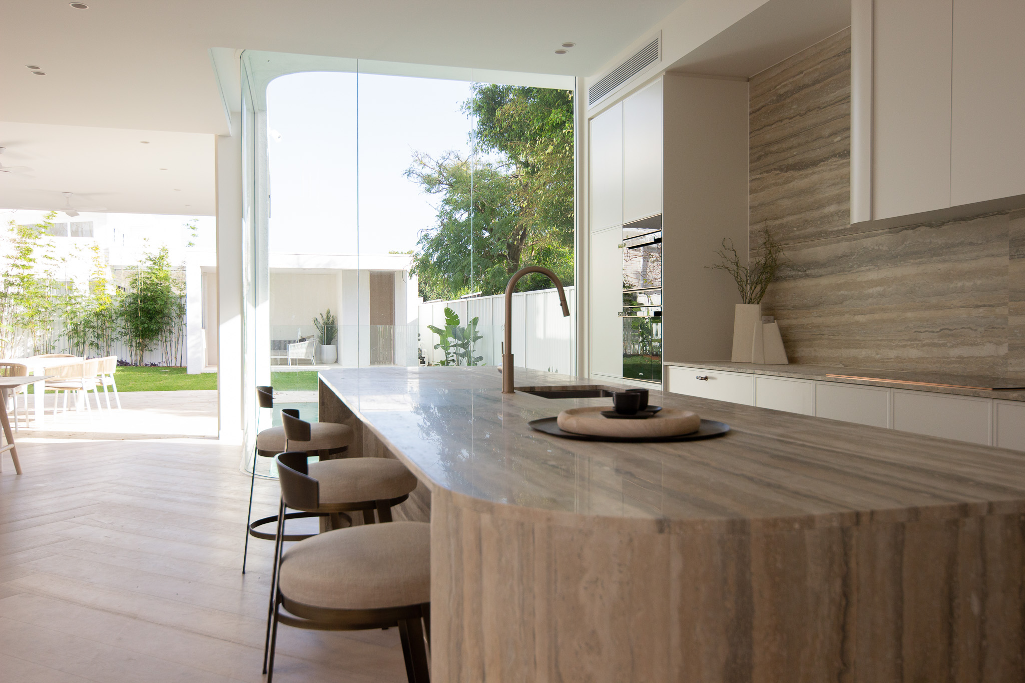 The Franklin Residence in Cronulla combines coastal charm with contemporary elegance. With a focus on light, airy spaces and a relaxed, beachside feel, the design seamlessly integrates natural textures and soft hues that reflect the stunning coastal surroundings.