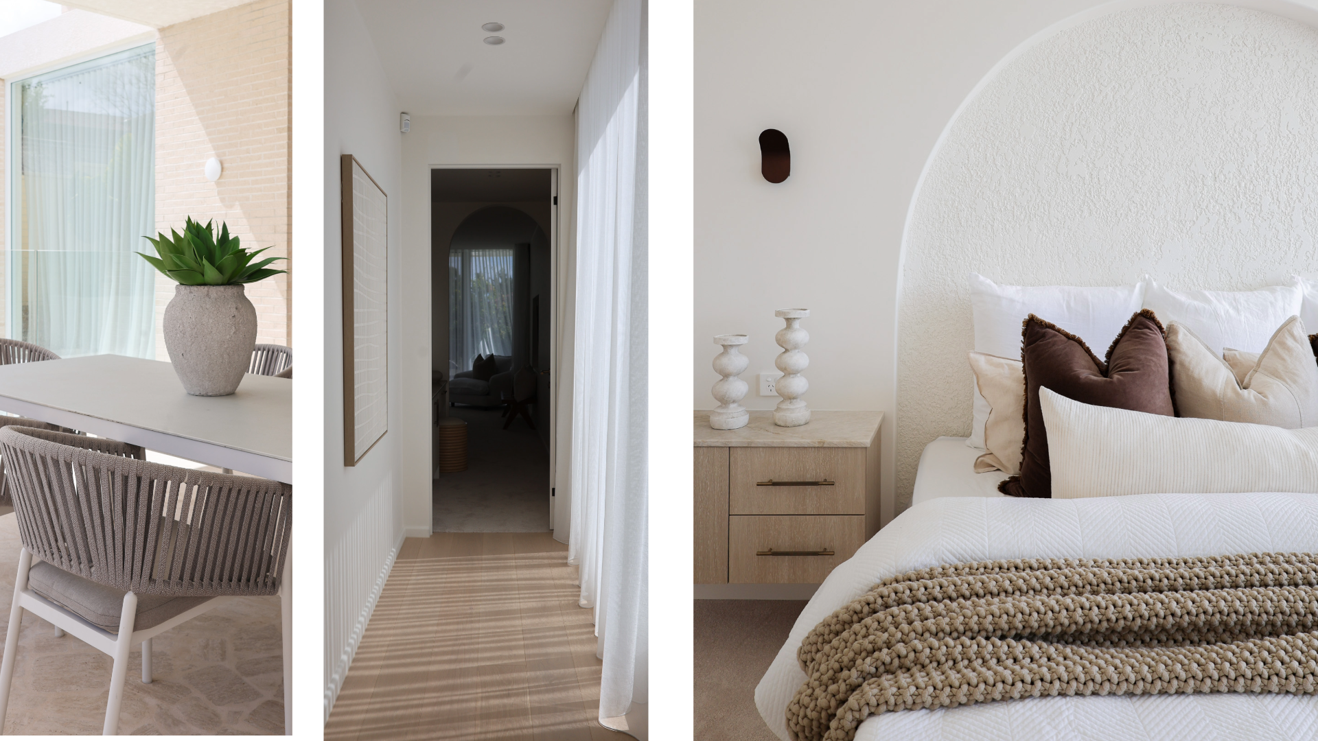 The Nicholl Retreat is a Mediterranean inspired property that beautifully captures the essence of relaxed, coastal elegance. With a blend of warm terracotta tones and natural textures the design evokes a serene, sun-drenched atmosphere.