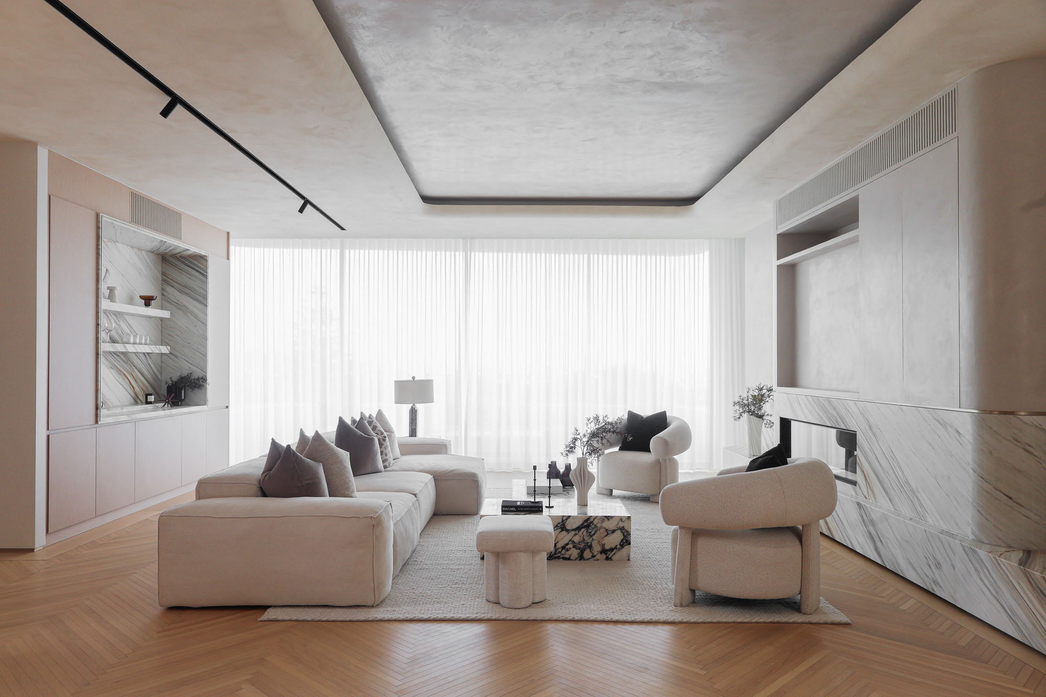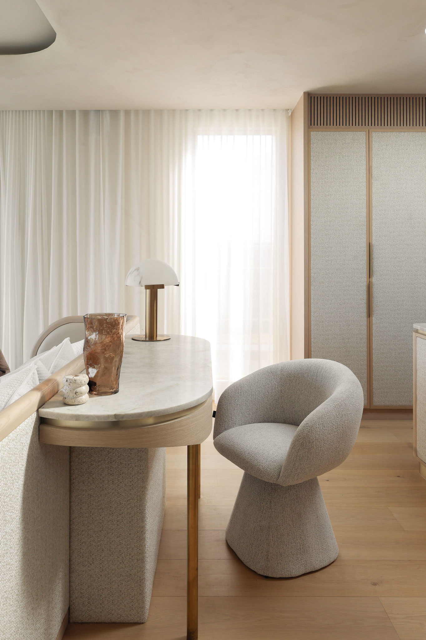 Our Rose Bay projects resides in an extraordinary position high above Sydney Harbour, with uninterrupted views stretching across the Harbour Bridge and city skyline. Our styling focus on this project was to enhance the home’s natural light, layered textures and relaxed colour palette. Soft linens, sculptural forms and warm neutrals were introduced to complement the architecture and frame the sweeping harbour outlooks without competing with them. Designed for both lavish entertaining and effortless family living, the interiors flow seamlessly to an alfresco terrace, private pool and manicured gardens, creating a sense of calm and privacy throughout.